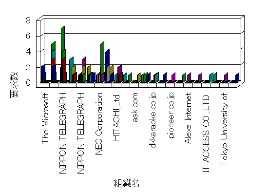 組織ユーザーにインターネット接続を提供する、商用または非営利団体、学術・行政機関などの、インターネット ドメイン で識別される団体や組織です。Microsoft Site Server Analysis は同じ組織に登録されたすべてのドメインを 1 つの組織としてグループ化します。ドメインがデータベースで使用できない場合は、1 つのインターネット ドメインが 1 つの組織を識別するのに使用されます。