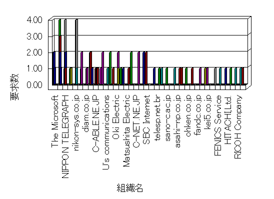 組織ユーザーにインターネット接続を提供する、商用または非営利団体、学術・行政機関などの、インターネット ドメイン で識別される団体や組織です。Microsoft Site Server Analysis は同じ組織に登録されたすべてのドメインを 1 つの組織としてグループ化します。ドメインがデータベースで使用できない場合は、1 つのインターネット ドメインが 1 つの組織を識別するのに使用されます。