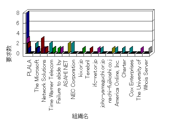 組織ユーザーにインターネット接続を提供する、商用または非営利団体、学術・行政機関などの、インターネット ドメイン で識別される団体や組織です。Microsoft Site Server Analysis は同じ組織に登録されたすべてのドメインを 1 つの組織としてグループ化します。ドメインがデータベースで使用できない場合は、1 つのインターネット ドメインが 1 つの組織を識別するのに使用されます。