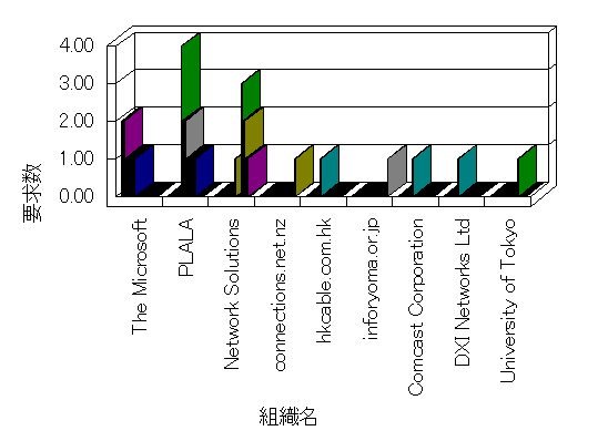 組織ユーザーにインターネット接続を提供する、商用または非営利団体、学術・行政機関などの、インターネット ドメイン で識別される団体や組織です。Microsoft Site Server Analysis は同じ組織に登録されたすべてのドメインを 1 つの組織としてグループ化します。ドメインがデータベースで使用できない場合は、1 つのインターネット ドメインが 1 つの組織を識別するのに使用されます。