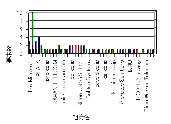 組織ユーザーにインターネット接続を提供する、商用または非営利団体、学術・行政機関などの、インターネット ドメイン で識別される団体や組織です。Microsoft Site Server Analysis は同じ組織に登録されたすべてのドメインを 1 つの組織としてグループ化します。ドメインがデータベースで使用できない場合は、1 つのインターネット ドメインが 1 つの組織を識別するのに使用されます。