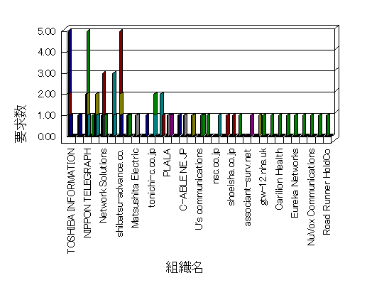 組織ユーザーにインターネット接続を提供する、商用または非営利団体、学術・行政機関などの、インターネット ドメイン で識別される団体や組織です。Microsoft Site Server Analysis は同じ組織に登録されたすべてのドメインを 1 つの組織としてグループ化します。ドメインがデータベースで使用できない場合は、1 つのインターネット ドメインが 1 つの組織を識別するのに使用されます。